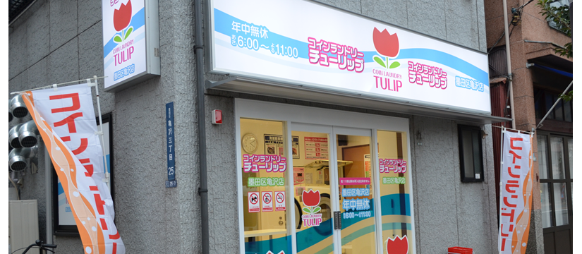コインランドリーチューリップ墨田区亀沢店は2016年オープンで最新の設備が整ったお店です。